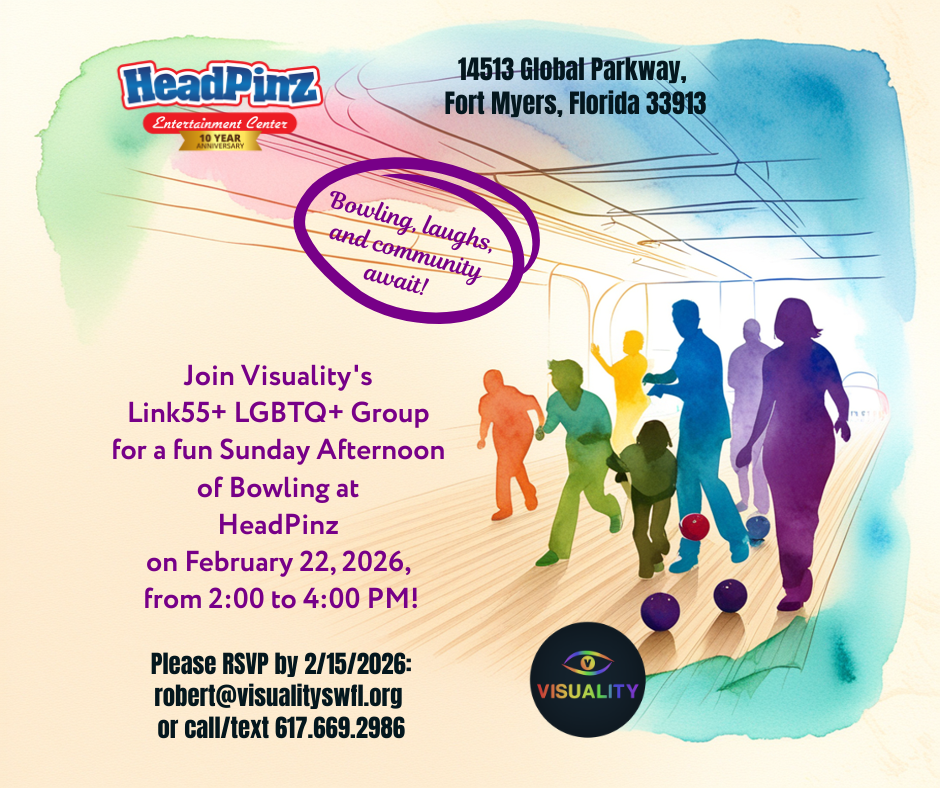Come join Visuality’s Link55+ LGBTQ+ Group for an afternoon of bowling, laughs, and community connection at HeadPinz! It’s a great chance to meet new friends, have fun, and enjoy a relaxed Sunday together. We’d love to see you there—RSVP by 2/15!